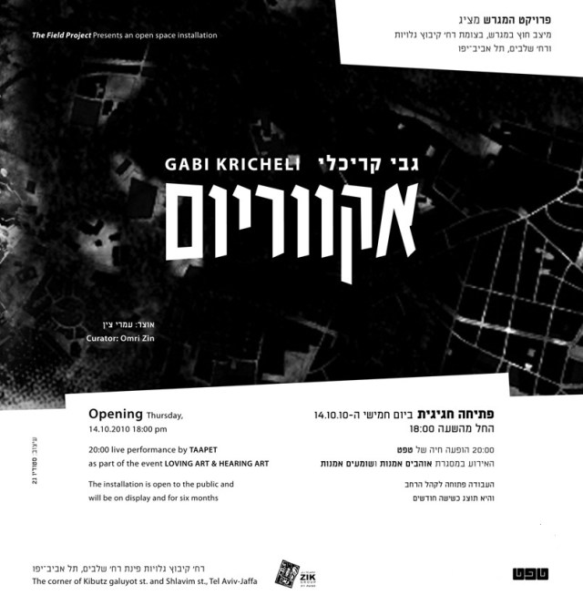 TaaPet will play live on Gabi Kricheli’s forthcoming installation opening. It’s taking place on a huge outdoor area in south Tel Aviv (where “Beit Merkazim” used to be). Check out the flyer for details: